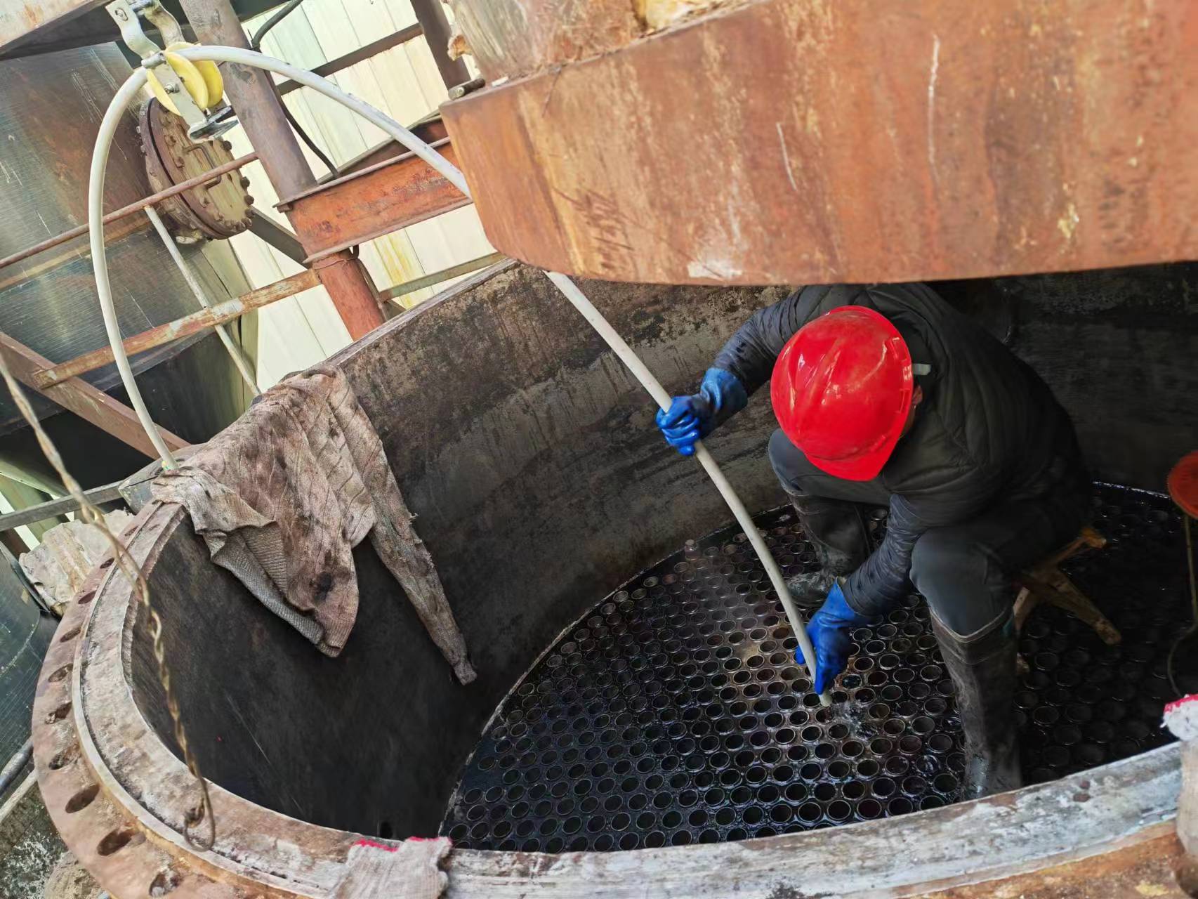 2024年1月22日在河北省石家莊市無(wú)極縣順達(dá)化工有限責(zé)任公司王云龍,王彥福等幾位老板的共同探討,共同努力和指導(dǎo)下,與我方:河南都市機(jī)械設(shè)備有限公司技術(shù)專員喬俊陽(yáng),科技開發(fā)領(lǐng)導(dǎo)人祝金善緊密配合,共同研究探討清洗使用GQ~600型智能清洗機(jī)的使用方法,如何鉆的更快更方便好用,如何節(jié)省時(shí)間,提高效益,做了深刻的研究,針對(duì)一臺(tái)600平方的廢水蒸發(fā)器,1100根管子,管子內(nèi)徑40mmX長(zhǎng)度5m.上面基本上沒有堵死,下面80%徹底堵死的管道,使用直徑37mmX12mm六刃代尖YC8合金鋼鉆頭進(jìn)行了疏通清洗,從早上8點(diǎn)半開始,中午休息1個(gè)小時(shí),到下午4點(diǎn)22分徹底疏通清洗完畢。只用了一根軟軸,一個(gè)鉆頭,鉆頭和軟軸基本上沒有什么磨損,感覺只要機(jī)器放穩(wěn),軟軸放順勁,不缺水不缺電還是很好用的,歡迎各位業(yè)內(nèi)人士,多多關(guān)注點(diǎn)贊評(píng)論收藏分享指導(dǎo)合作!